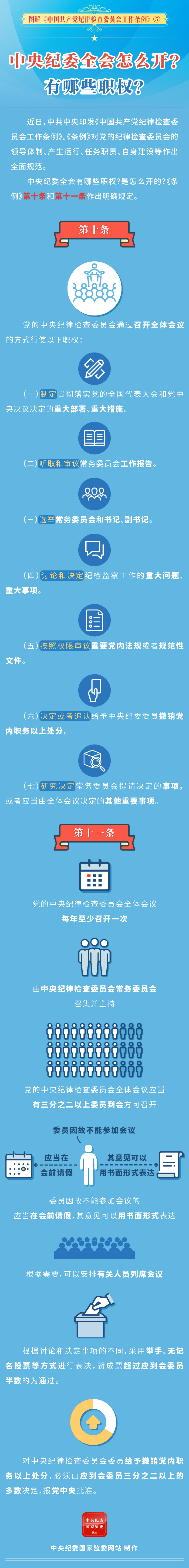 第十一條 黨的中央紀(jì)律檢查委員會全體會議每年至少召開一次,由中央紀(jì)律檢查委員會常務(wù)委員會召集并主持。