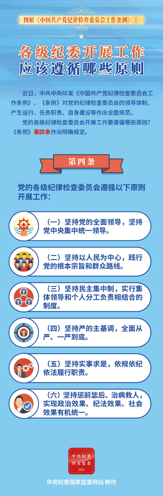 第四條 黨的各級紀(jì)律檢查委員會遵循以下原則開展工作: