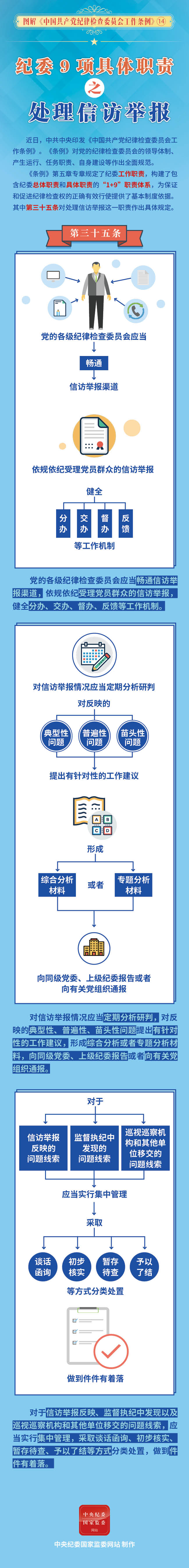 第三十五條 黨的各級紀(jì)律檢查委員會應(yīng)當(dāng)暢通信訪舉報(bào)渠道,依規(guī)依紀(jì)受理黨員群眾的信訪舉報(bào),健全分辦、交辦、督辦、反饋等工作機(jī)制。