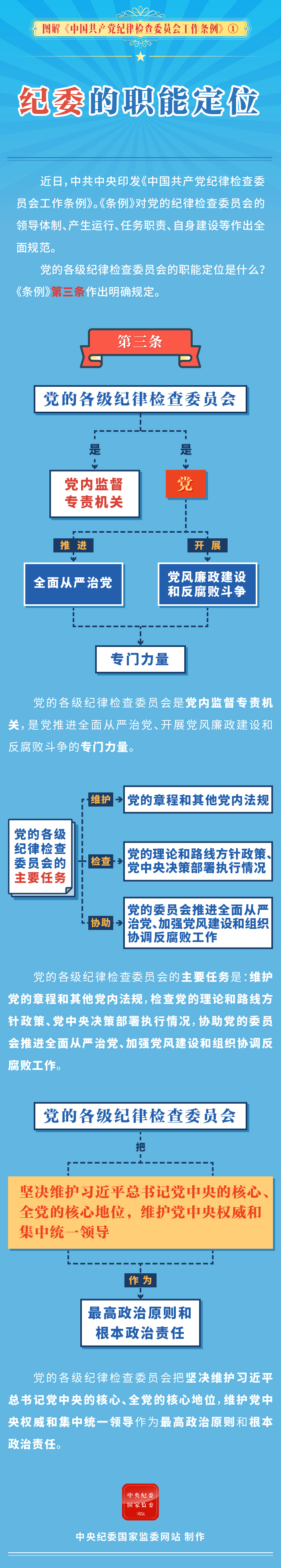 第三條 黨的各級紀(jì)律檢查委員會是黨內(nèi)監(jiān)督專責(zé)機(jī)關(guān),是黨推進(jìn)全面從嚴(yán)治黨、開展黨風(fēng)廉政建設(shè)和反腐敗斗爭的專門力量。