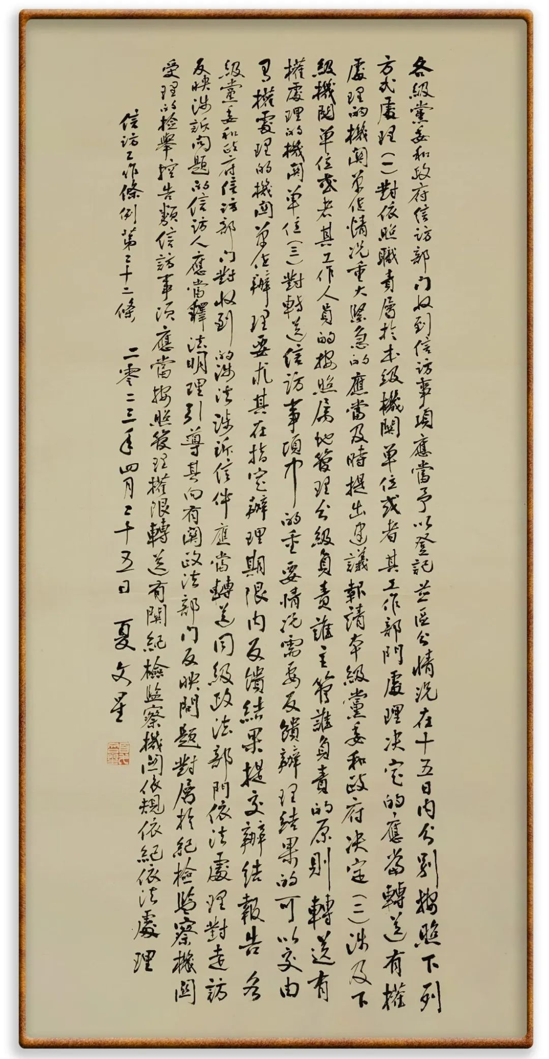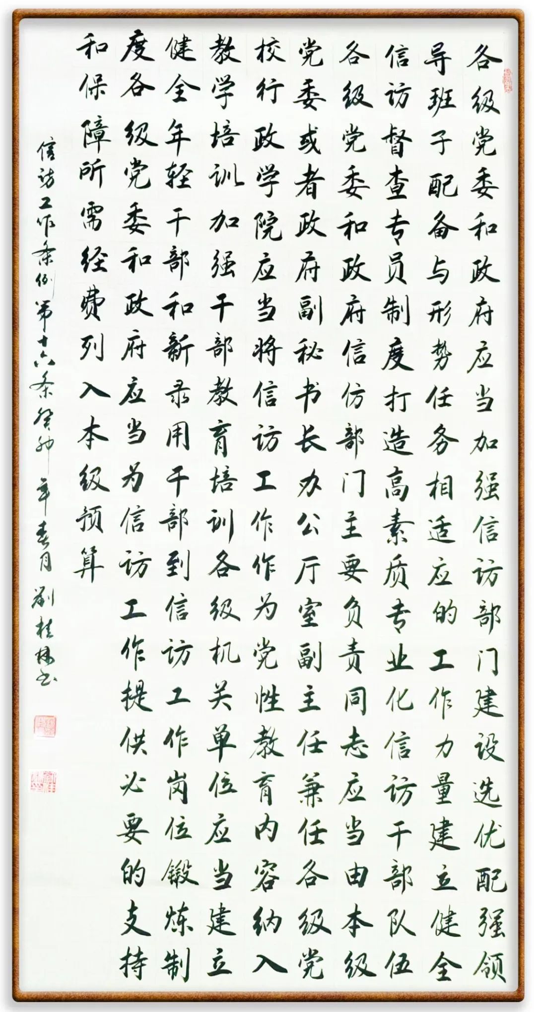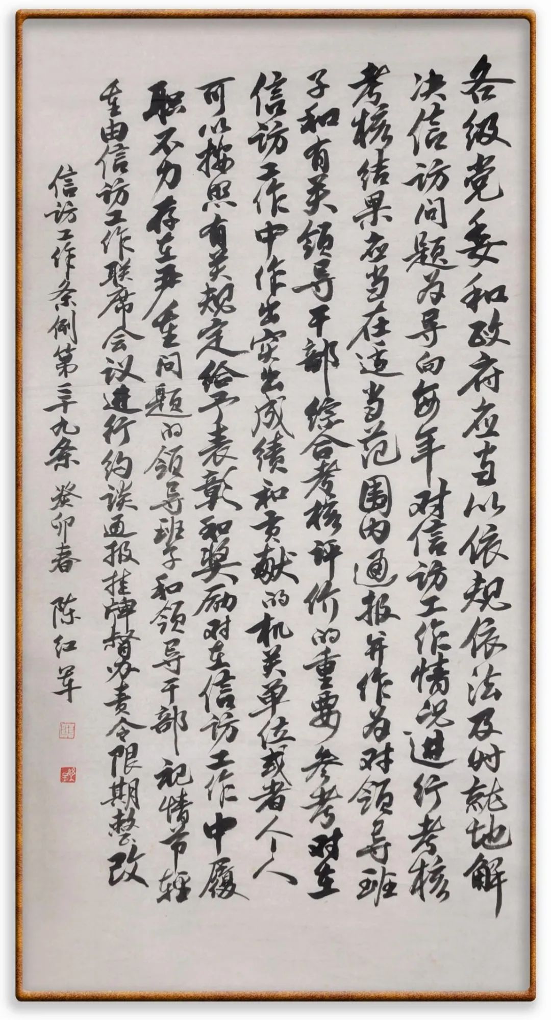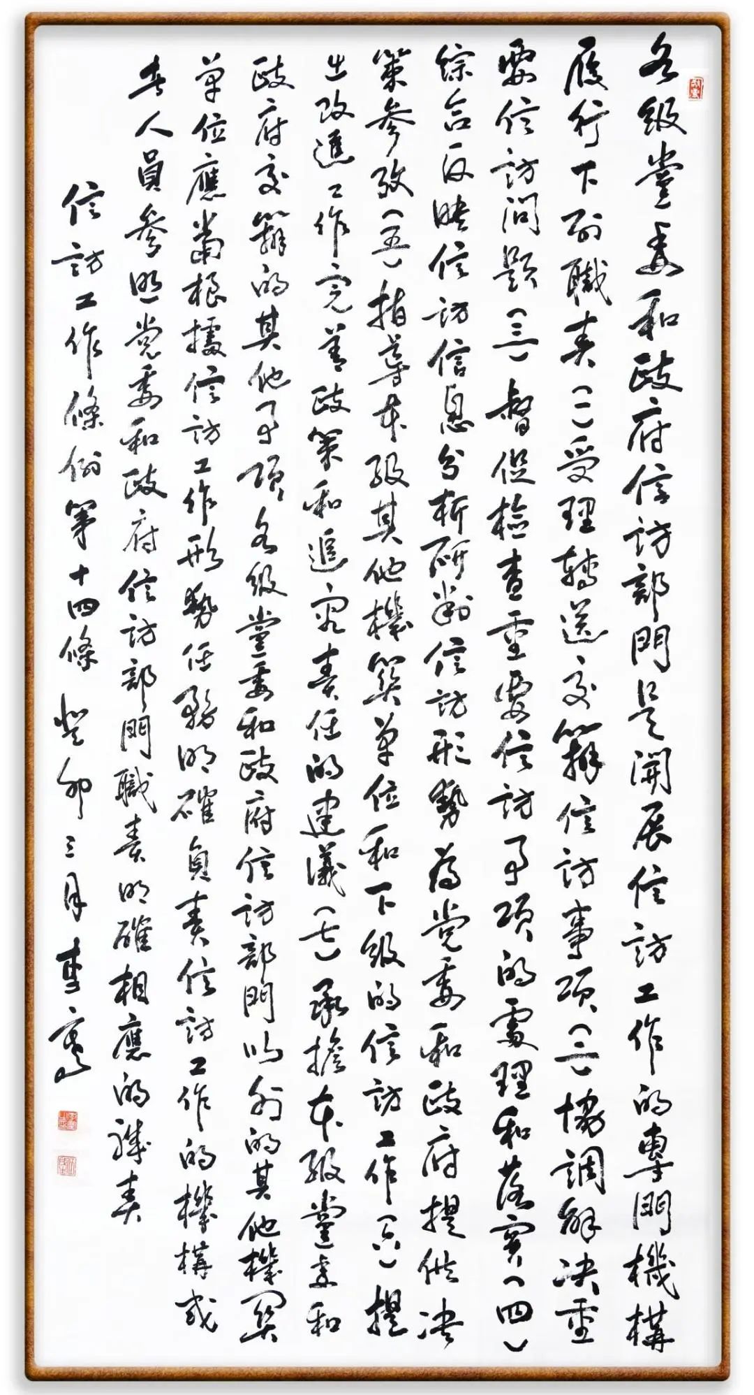 各級(jí)機(jī)關(guān)、單位領(lǐng)導(dǎo)干部應(yīng)當(dāng)閱辦群眾來(lái)信和網(wǎng)上信訪、定期接待群眾來(lái)訪、定期下訪,包案化解群眾反映強(qiáng)烈的突出問(wèn)題。