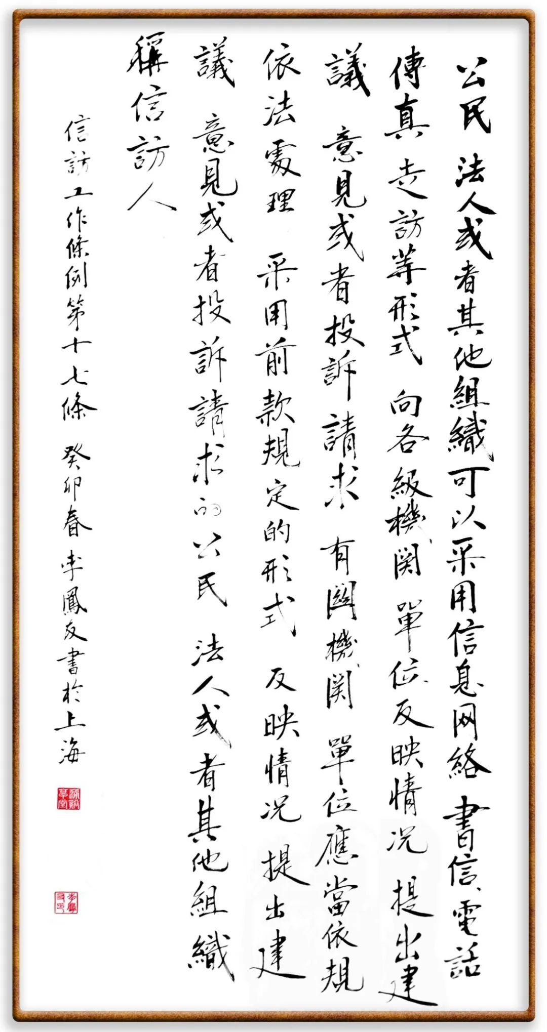 第十七條 公民、法人或者其他組織可以采用信息網(wǎng)絡(luò)、書(shū)信、電話、傳真、走訪等形式,向各級(jí)機(jī)關(guān)、單位反映情況,提出建議、意見(jiàn)或者投訴請(qǐng)求,有關(guān)機(jī)關(guān)、單位應(yīng)當(dāng)依規(guī)依法處理。
