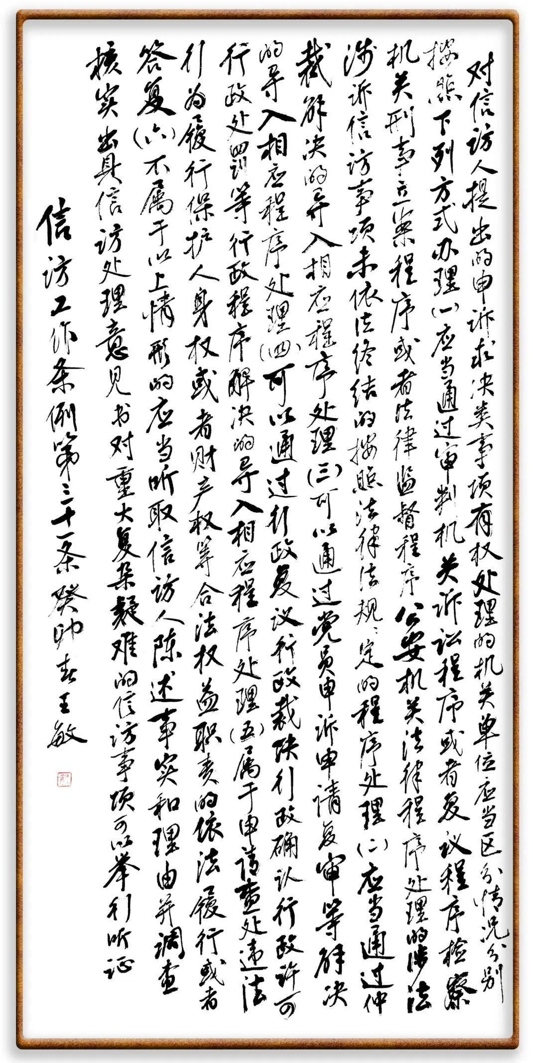 (四)堅(jiān)持依法按政策解決問(wèn)題。將信訪納入法治化軌道,依法維護(hù)群眾權(quán)益、規(guī)范信訪秩序。