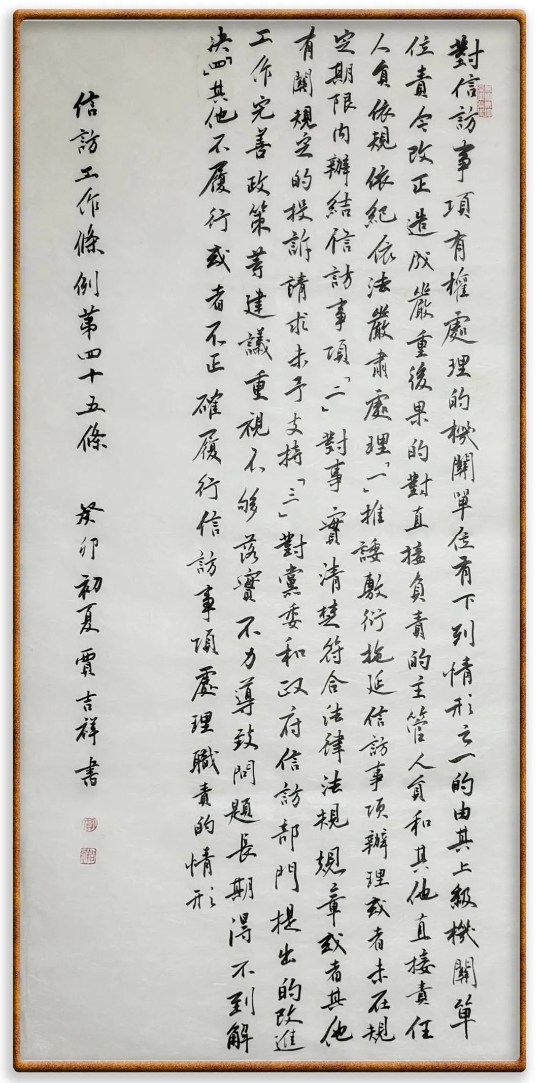 第四十五條 對(duì)信訪事項(xiàng)有權(quán)處理的機(jī)關(guān)、單位有下列情形之一的,由其上級(jí)機(jī)關(guān)、單位責(zé)令改正;造成嚴(yán)重后果的,對(duì)直接負(fù)責(zé)的主管人員和其他直接責(zé)任人員依規(guī)依紀(jì)依法嚴(yán)肅處理: