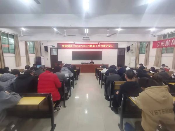 3月23日下午,智能制造學(xué)院全體教職工在一教學(xué)樓一樓東頭多媒體開展2023年3月政治理論學(xué)習(xí)。專職副書記王陽春主持會議,二級學(xué)院全體教職工參加學(xué)習(xí)。