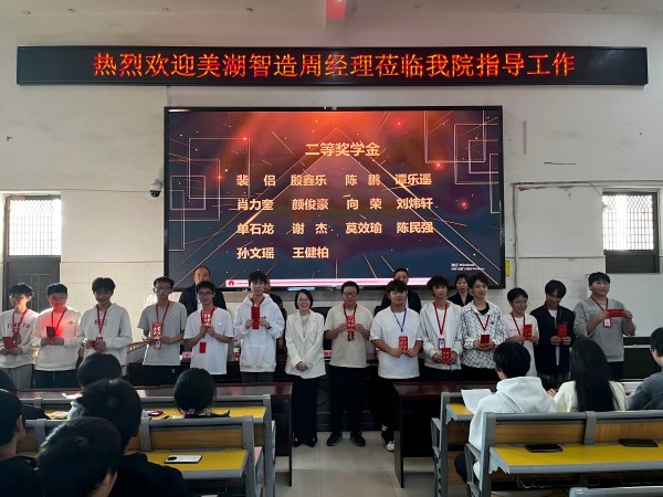 11月6日下午,我院在第一教學(xué)樓5樓多媒體教室隆重舉行了“美湖智造”定向班獎學(xué)金頒獎儀式。