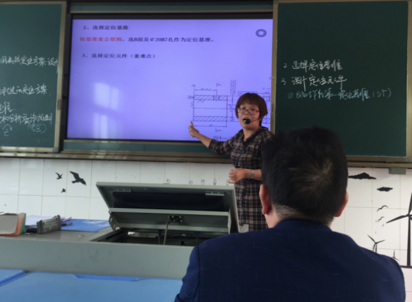 寧偉嫦老師將夾具課程中的“套筒零件鉆孔”章節(jié)內(nèi)容通過(guò)啟發(fā)式、探究式的教學(xué)方法,結(jié)合PPT、視頻等多媒體教學(xué)手段,將枯燥難懂的定位元件、概念及圖紙講解得清晰易懂,重難點(diǎn)突出,深受學(xué)生的喜歡,特別是課堂環(huán)節(jié)中穿插了大國(guó)工匠王樹(shù)軍的個(gè)人故事,讓學(xué)生了解了工匠精神中精益求精的過(guò)程,明白了創(chuàng)新精神的重要性,學(xué)生受益匪淺,在場(chǎng)聽(tīng)課的老師也很有收獲。寧老師的課堂在傳授專(zhuān)業(yè)知識(shí)的同時(shí)達(dá)到了育人的效果。