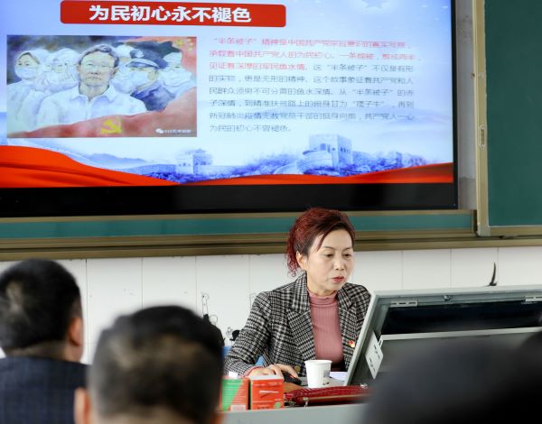 接著,楊紅書記講述了“半條棉被”的精神,講到了中國共產(chǎn)黨人一心為民的初心,作為教師的初心與使命就是教好書,育好人,要堅(jiān)持從群眾中來,到群眾中去,同師生想在一起、干在一起,只有這樣學(xué)院事業(yè)、系部的事業(yè)才能乘風(fēng)領(lǐng)航、行穩(wěn)致遠(yuǎn)。