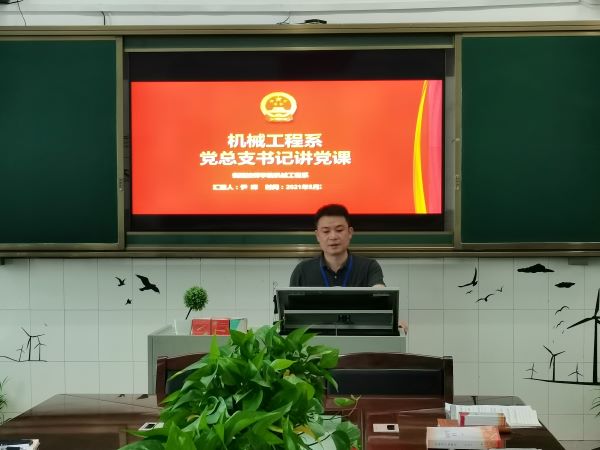 ▲機(jī)械工程系黨總支書記尹暉講授專題黨課