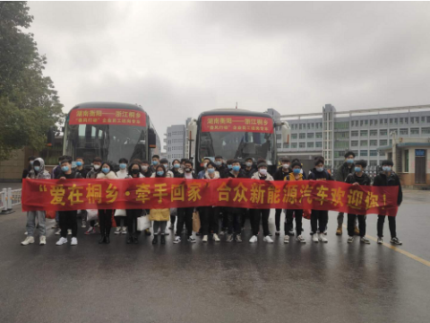 為保障學(xué)生在頂崗實習(xí)中的健康安全,汽車工程系副主任易鳳華多次與企業(yè)溝通, 協(xié)定由企業(yè)派專車接送學(xué)生統(tǒng)一返崗。截至目前,共有 63 名學(xué)生赴佛山順德矢崎汽車配件有限公司、36 名學(xué)生赴浙江合眾新能源汽車有限公司和 19 名學(xué)生赴加特可(蘇州)自動變速箱有限公司投入企業(yè)復(fù)工復(fù)產(chǎn)。