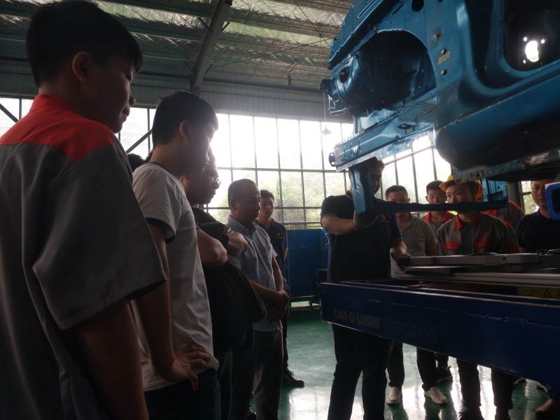 兩天來,共對我系專業(yè)教師進行了四個模塊培訓,分別為:(1)車身電子測量與校正培訓;(2)模擬結(jié)構件更換培訓;(3)非結(jié)構件更換培訓;(4)鋼制門板修復及鋁制機艙蓋修復培訓。