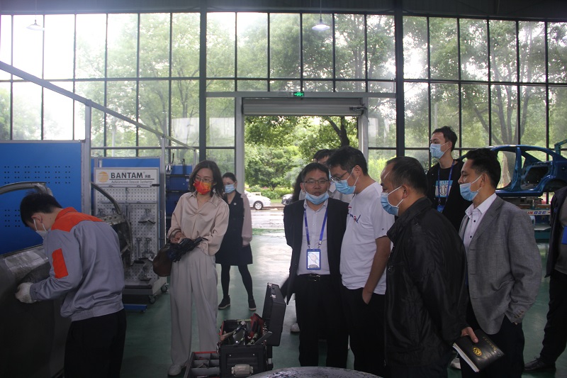 洽談會前,與會人員參觀了學院公共實訓基地、車身修復實訓室、新能源汽車實訓室、智能制造競賽基地。