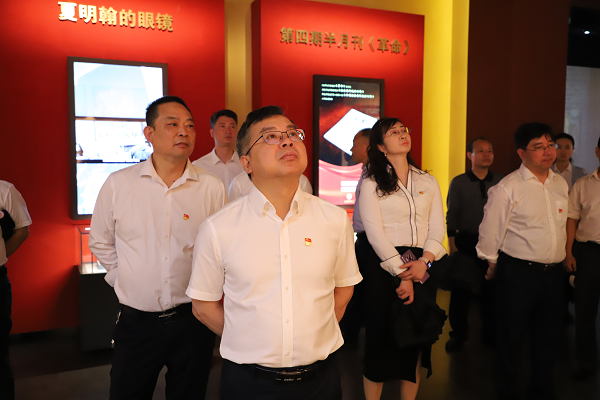 大家沿著毛澤東同志等老一輩無產(chǎn)階級(jí)革命家在衡陽的革命足跡,來到湘南學(xué)聯(lián)紀(jì)念館。在紀(jì)念館內(nèi)毛澤東同志雕像前,全體同志行三鞠躬禮,表達(dá)對(duì)毛澤東同志深切緬懷和無限敬仰之情。走進(jìn)館內(nèi),同志們深入了解湘南學(xué)聯(lián)的創(chuàng)辦歷史、革命意義以及夏明翰、毛澤建等革命英雄寧死不屈的英勇事跡等,追憶激情澎湃的革命歲月。