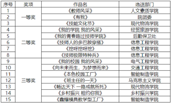 優(yōu)秀組織獎:交通工程學院、現(xiàn)代物流學院、智能智造學院、信息工程學院、經貿旅游學院。