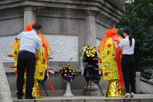 巍巍豐碑,英烈不朽,在岳屏山抗戰(zhàn)紀念城,全體師生排著整齊的隊伍,在烈士紀念碑前敬獻花籃,整理花籃緞帶并三鞠躬。大家懷著崇敬的心情緩步繞行一周,寄托對人民英雄的深切緬懷和崇高敬意。