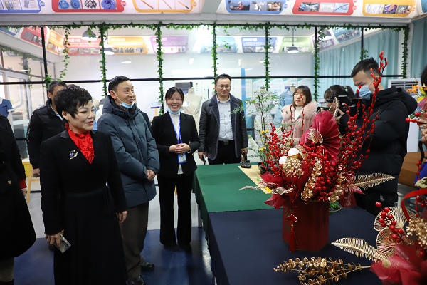 揭牌儀式后,與會領(lǐng)導(dǎo)一同參觀了學(xué)院“技能特色”作品成果展覽室、新時代文明實踐活動宣傳展板等,現(xiàn)場還召開了座談會,查閱了文明創(chuàng)建相關(guān)資料臺賬。