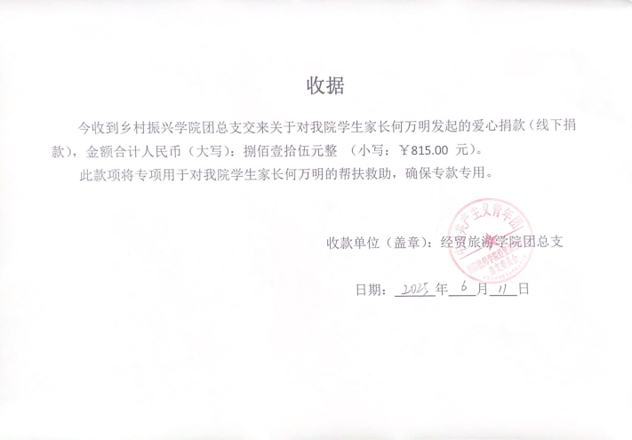 應(yīng)經(jīng)貿(mào)旅游學(xué)院求助,我院團(tuán)總支積極響應(yīng)并在全院范圍內(nèi)向師生發(fā)出倡議,捐款多少都是善舉。只有人人都獻(xiàn)出一點愛,世界將變成美好的人間。