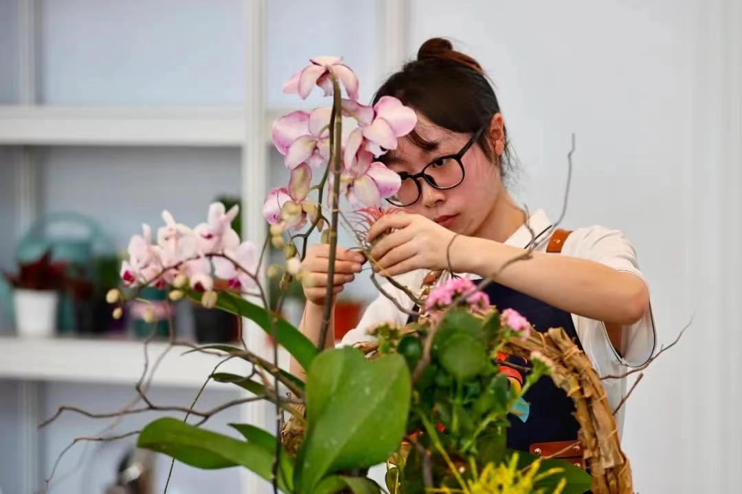 2023年9月16日,中華人民共和國第二屆職業(yè)技能大賽在天津拉開帷幕,花藝競賽項目要求在規(guī)定的時間內完成對作品的創(chuàng)作,這對參賽選手的時間把控以及隨機應變能力是一種很大的考驗。同時,比賽現(xiàn)場的激烈競爭、其他選手的出色表現(xiàn)也給她增加了一定的壓力。然而,肖娜能夠冷靜應對,始終保持專注和自信,深入研究和分析,找到問題的根源,在困境中尋找到了突破口。
