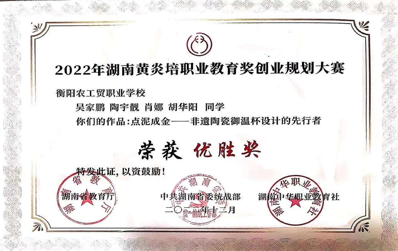 榮獲2022年湖南黃炎培職業(yè)教育獎創(chuàng)業(yè)規(guī)劃大賽優(yōu)勝獎