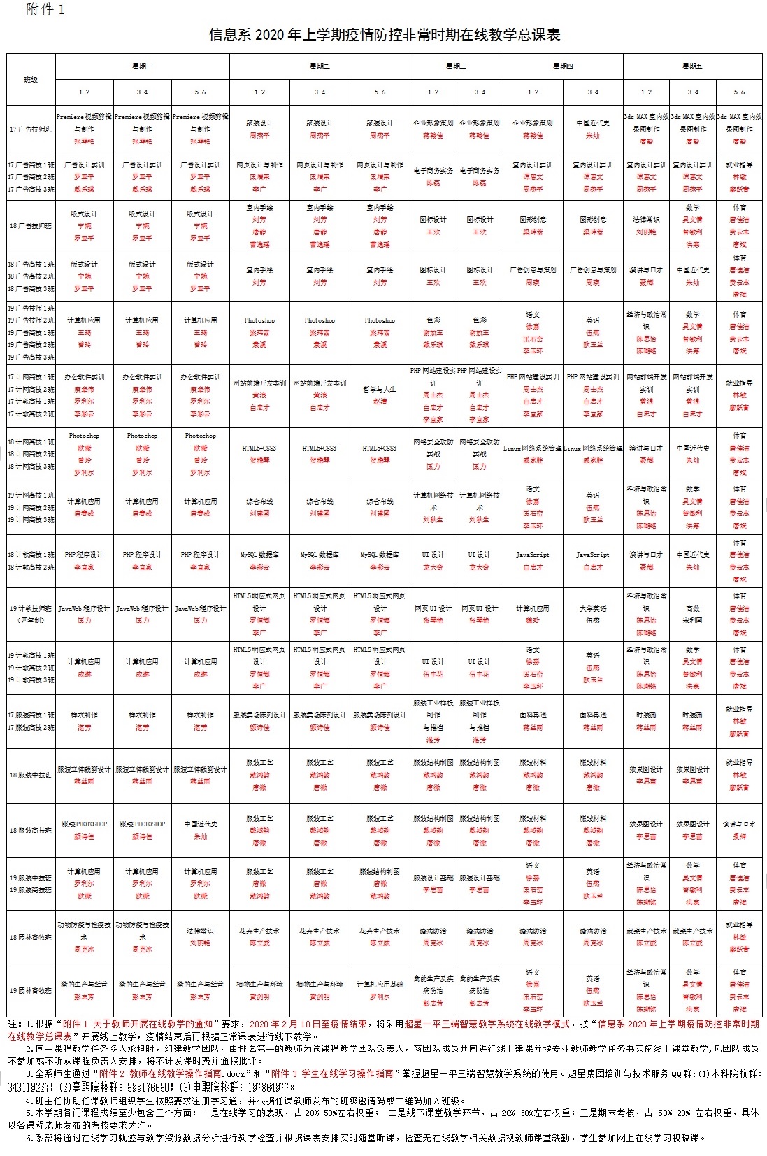 附件1 信息系2020年上學期疫情防控非常時期在線教學總課表(20200208).pdf