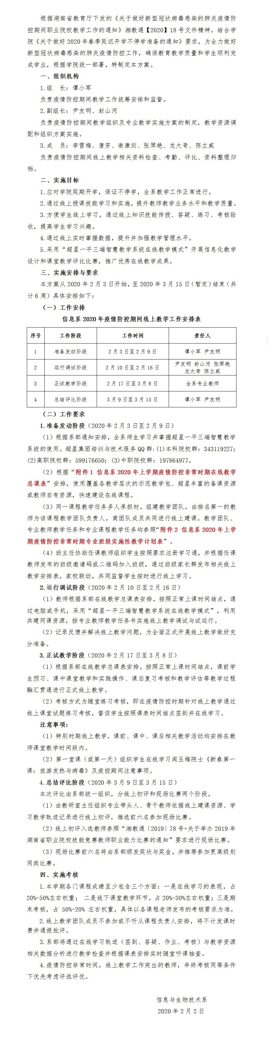 信息系2020年疫情防控期間教學組織及專業(yè)教學實施方案