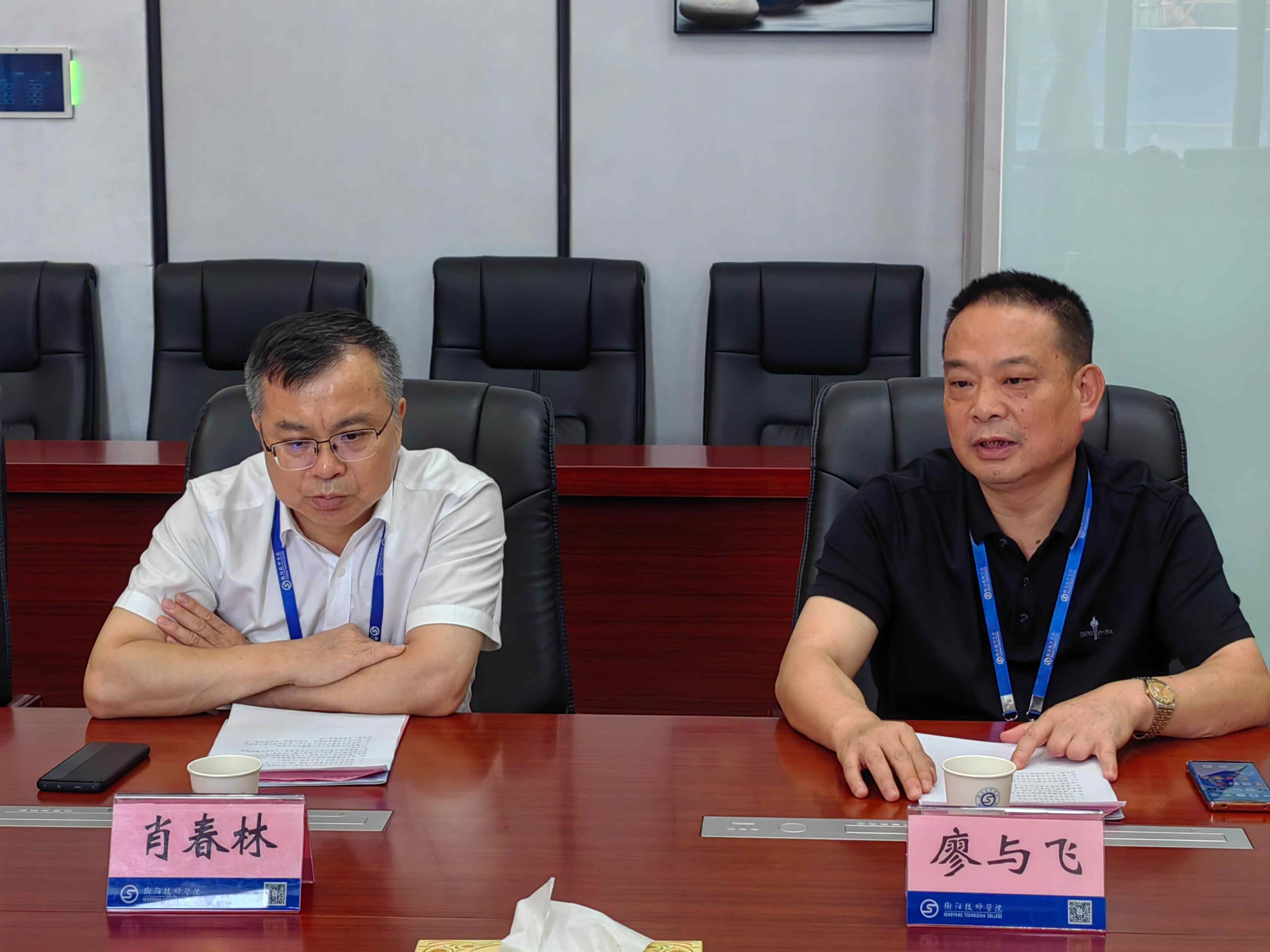 學(xué)院黨委書記肖春林、院長(zhǎng)廖與飛、副院長(zhǎng)成朝陽(yáng)、歐陽(yáng)智勇、周少良及相關(guān)部門、二級(jí)學(xué)院負(fù)責(zé)人參加會(huì)談。