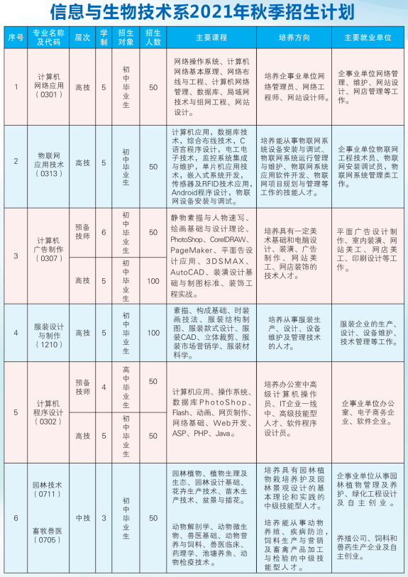 衡陽技師學(xué)院2021年秋季信息與生物技術(shù)系招生簡章